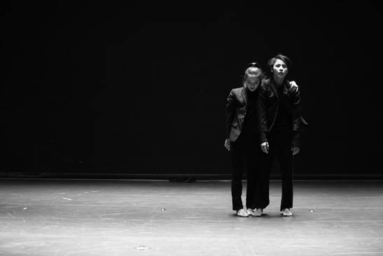 在這段劇中,肢體舒展是他們舞蹈的主要語(yǔ)言。兩位舞者,或旋轉(zhuǎn),或靜止,每個(gè)人都有自己的區(qū)域和思想,以一種互動(dòng)方式不斷移動(dòng)和接觸、吸收和重建。